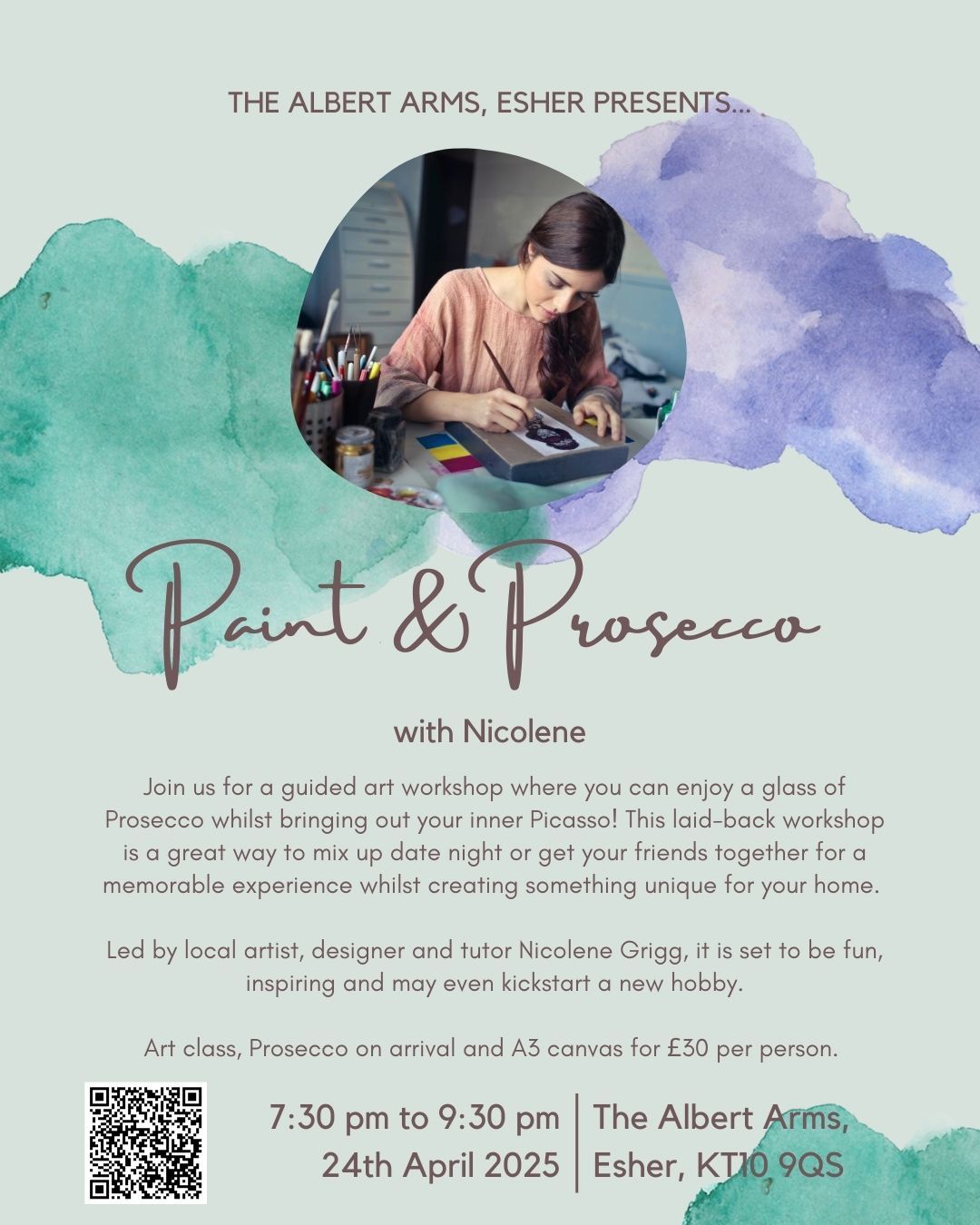 🎟 £30 per person – includes an art class, prosecco on arrival, and an A3 canvas to take home!