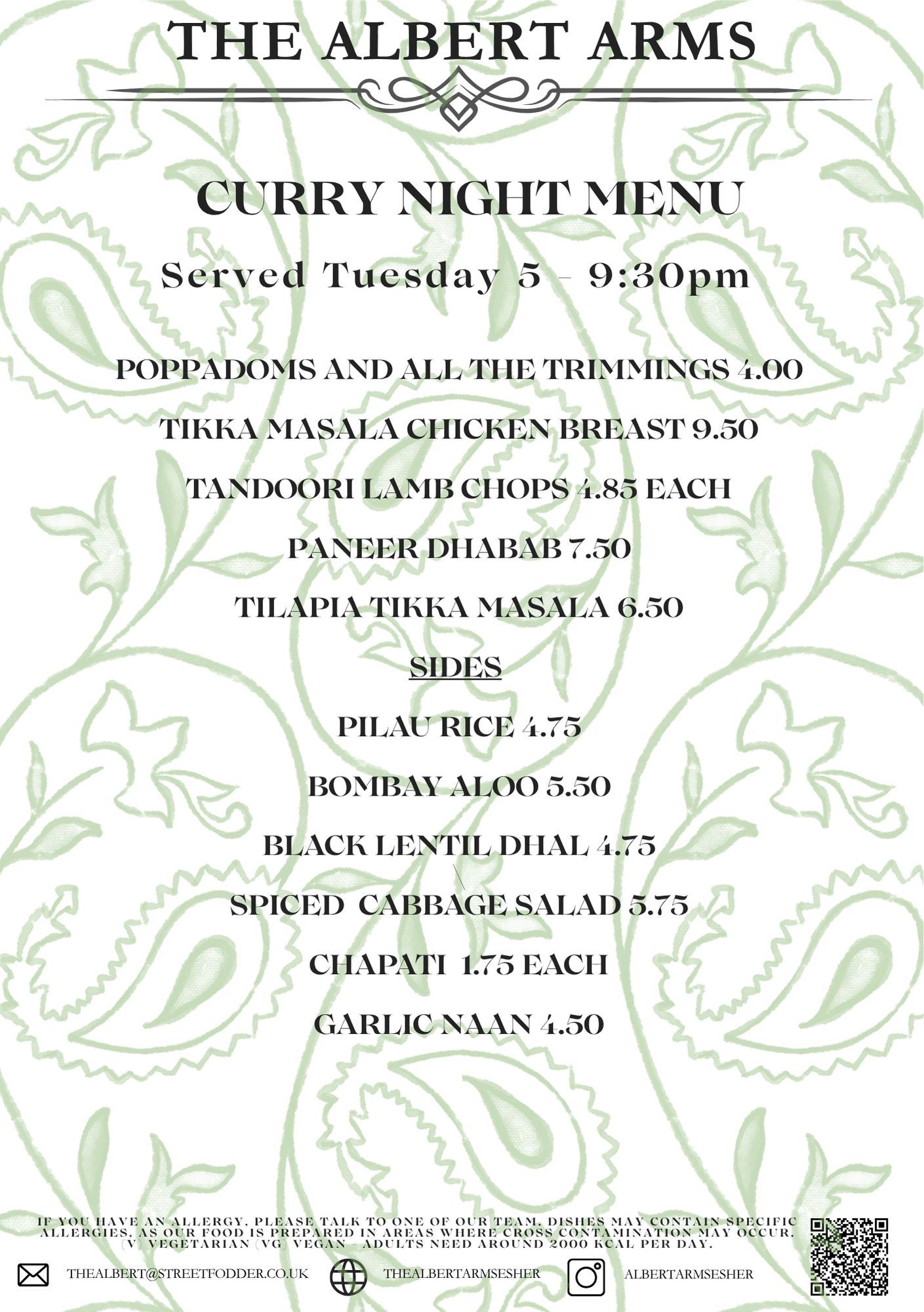 Come and enjoy our Sal inspired curry menu with some spiced classics in your favourite pub atmosphere.