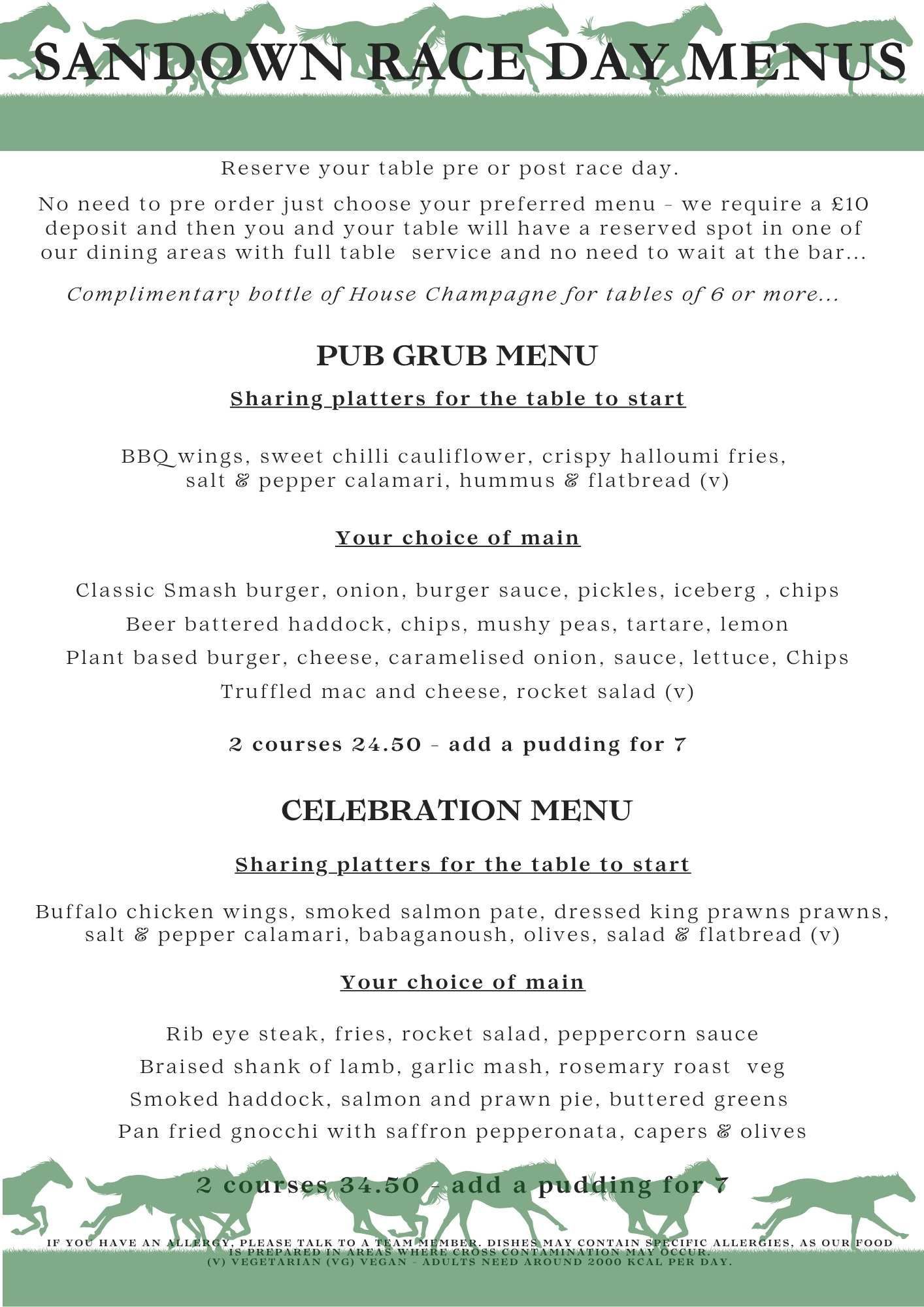 SANDOWN RACE DAY MENUS