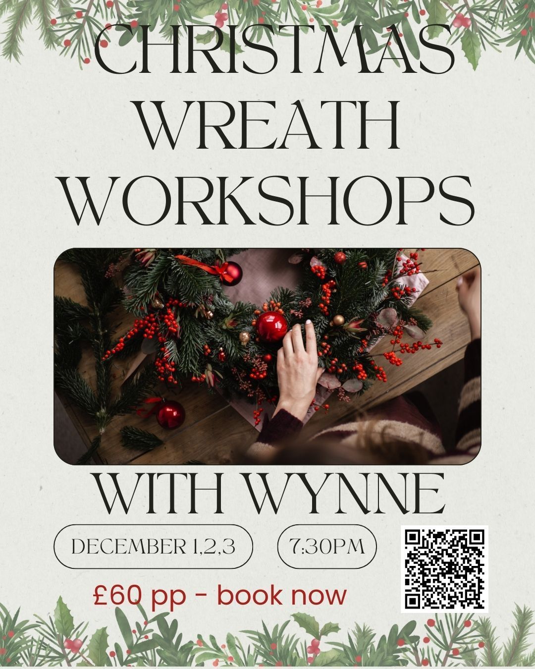 Join Wynne , our expert wreath maker, for a fun-filled class where you'll learn to craft beautiful, festive wreaths from scratch.